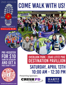 In honor of Parkinson’s Awareness Month, we are excited to be hosting the 2nd Annual Red Rose Parkinson’s Community Walk. Join us for a day for people with Parkinson’s and their families. We will come together for a short paved walk to get moving. Throughout the morning, we will also be hosting various vendors providing resources and education for people with Parkinson’s and their families and various games and activities. We look forward to coming together to build a better connected and supported community for people with Parkinson’s in Lancaster. Everyone who has preregistered will receive an event t-shirt.